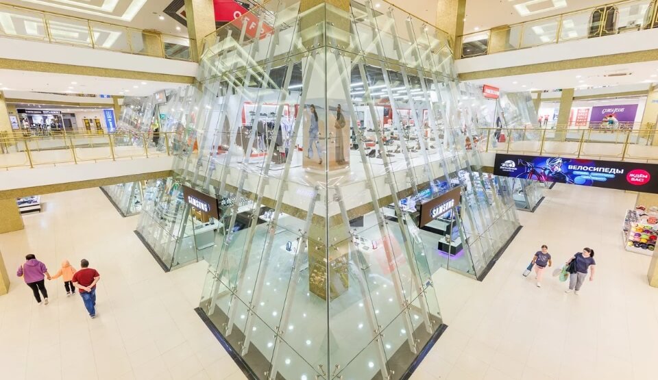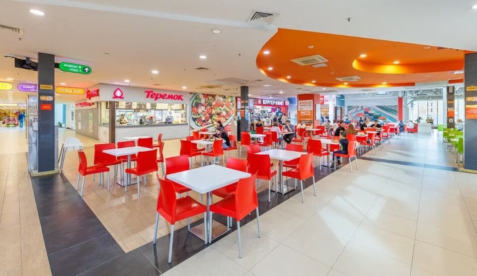 The first four floors of the complex house Perekrestok supermarket, Computer World store, Snark Book Club, M.Video electronics hypermarket and more than 200 stores offering clothing, footwear and accessories. Located on the 4th floor is a five-screens Kronverk Cinema, and a food court. A comfortable business center occupies the two top floors. Next to the building is a multi-storied parking for 300 cars, which is accessible from all the floors of the complex.