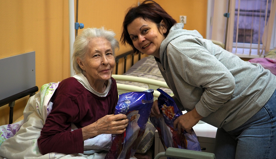 T-shirts were donated to elderly patients celebrating the holidays in hospital wards at Maximilianovskaya Hospital and Kashchenko Hospital.