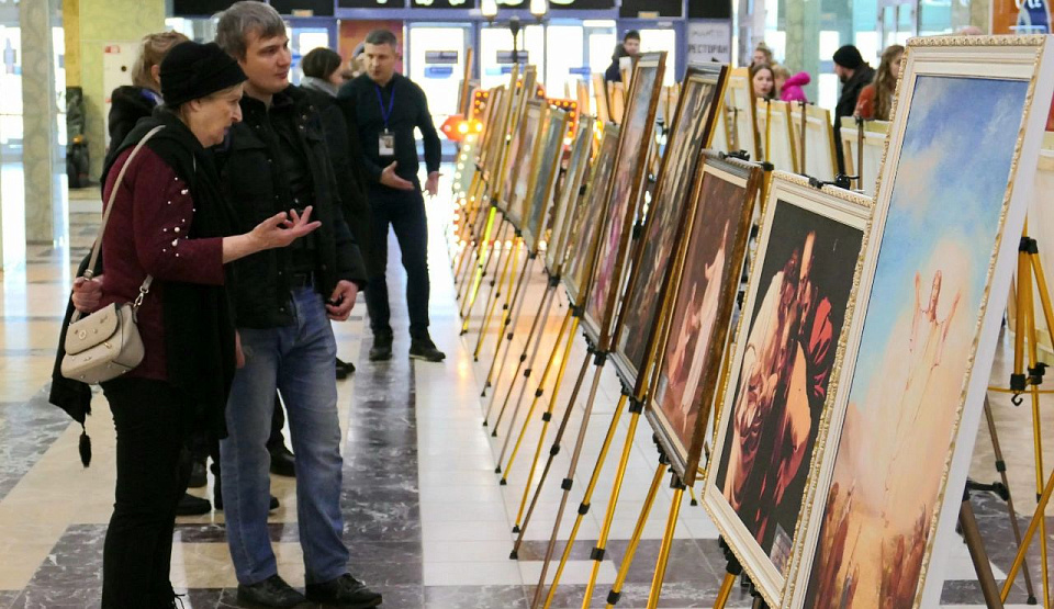 The exhibition includes over 40 reproductions of paintings by Russian artists including Ivan Kramskoy, Vasily Polenov, Alexander Ivanov, Ivan Aivazovsky, and Ilya Repin, as well as works by Renaissance masters such as Leonardo da Vinci, Rembrandt Harmenszoon van Rijn, Michelangelo Buonarroti, Peter Paul Rubens, and others.